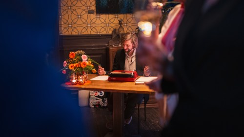 Met mijn act ‘Verhalen op verzoek’ schrijf ik al tien jaar ultrakorte, persoonlijke verhalen, ter plekke verzonnen en direct uitgetikt op een oude schrijfmachine.